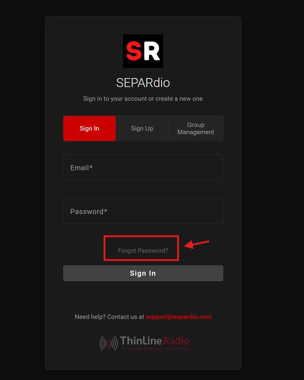 Visit https://thinline.separdio.com and select the "Forget Password" button