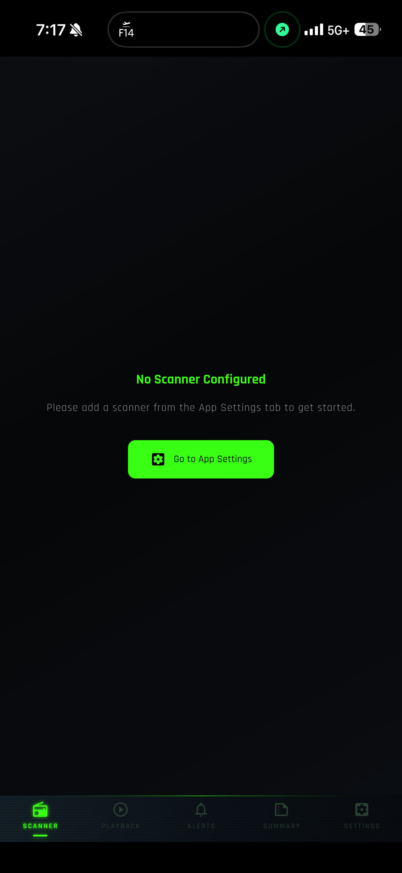 The next page you see will notify you that you have no scanner configured. Select the "Go to App Settings" page to add SEPARdio to your app.